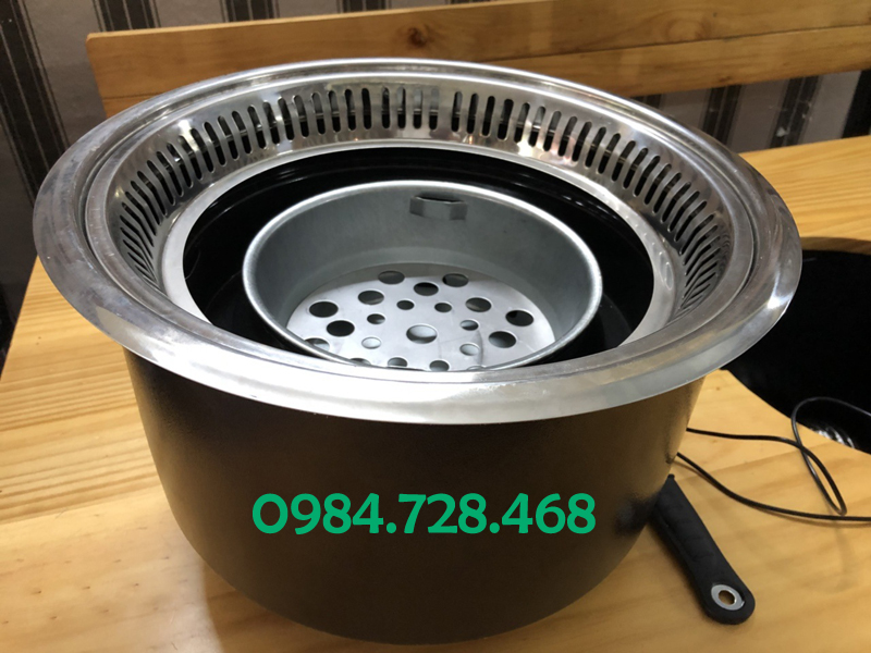 Mẫu bếp nướng không khói Hàn Quốc hút dưới có quạt thổi KHQ - A05 là loại bếp nướng Hàn Quốc đặt dưới bàn, hay âm dưới bàn với hệ thống hút khói đặt phía dưới nhằm hút khói và mùi thức ăn đưa ra ngoài, bếp được nhập khẩu trực tiếp từ Hàn Quốc cho nhà hàng, khách sạn, quán ăn dùng để nướng, nấu lẩu, BBQ...