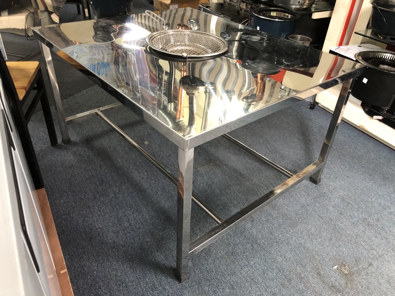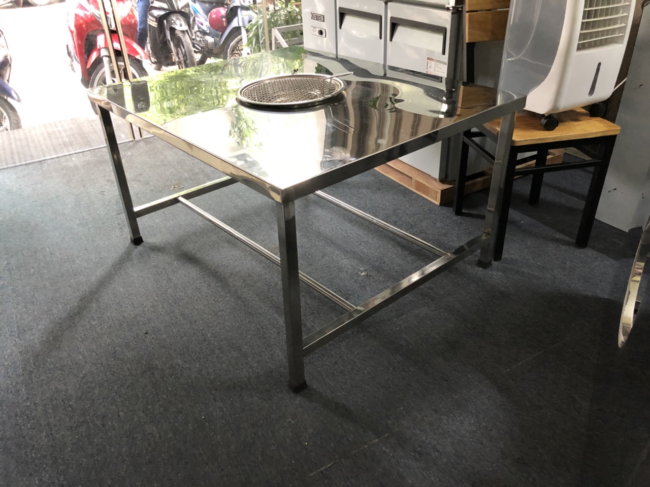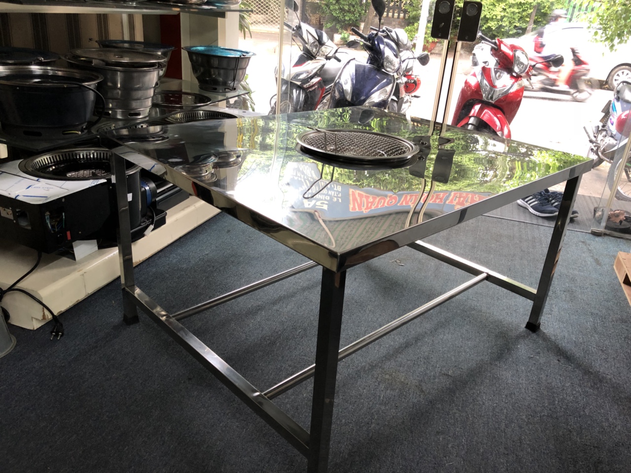 Bàn bếp nướng than inox cho nhà hàng, quán nướng, bàn nướng được kết nối với hệ thống ống hút khói tại bàn, hay ống hút khói âm, mẫu bàn nướng đẹp..